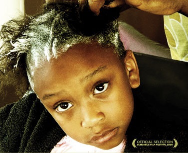 ‘Good Hair’ is a protest in documentary form, led by comedian Chris Rock. He, on behalf of his young daughters (“Why don’t I have good hair, Daddy?” Lola Simone Rock, 7), investigates the lengths many black women go to in order to ‘relax’ their natural hair. “It’s not good hair!”, one woman said of the afro-texture, and we can watch the industrial sized tubs of chemical relaxer strip the hair of its natural protein in order to create straighter styles. More than once the idea of Caucasian (or Asian, as is used in most of the weaves) hair being more desirable is mentioned.