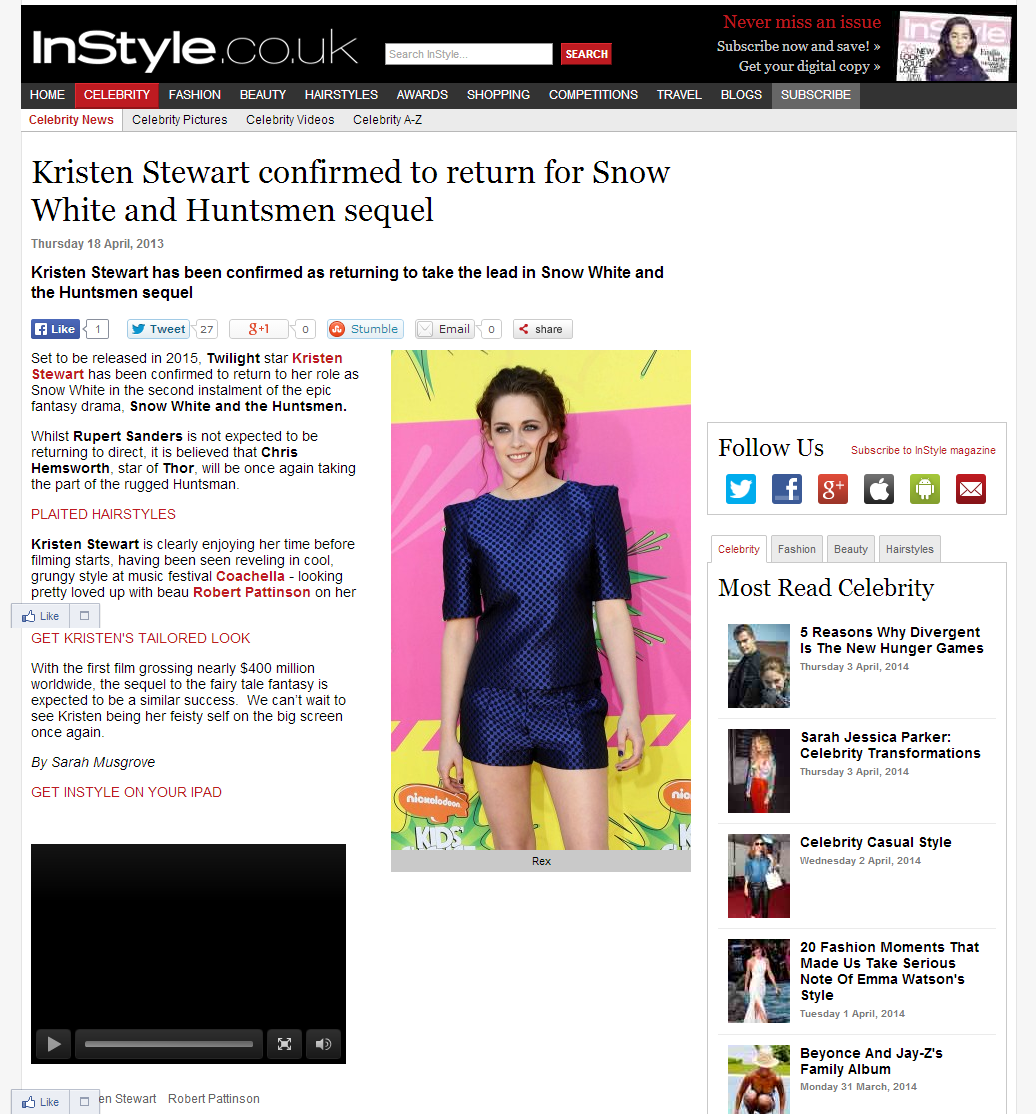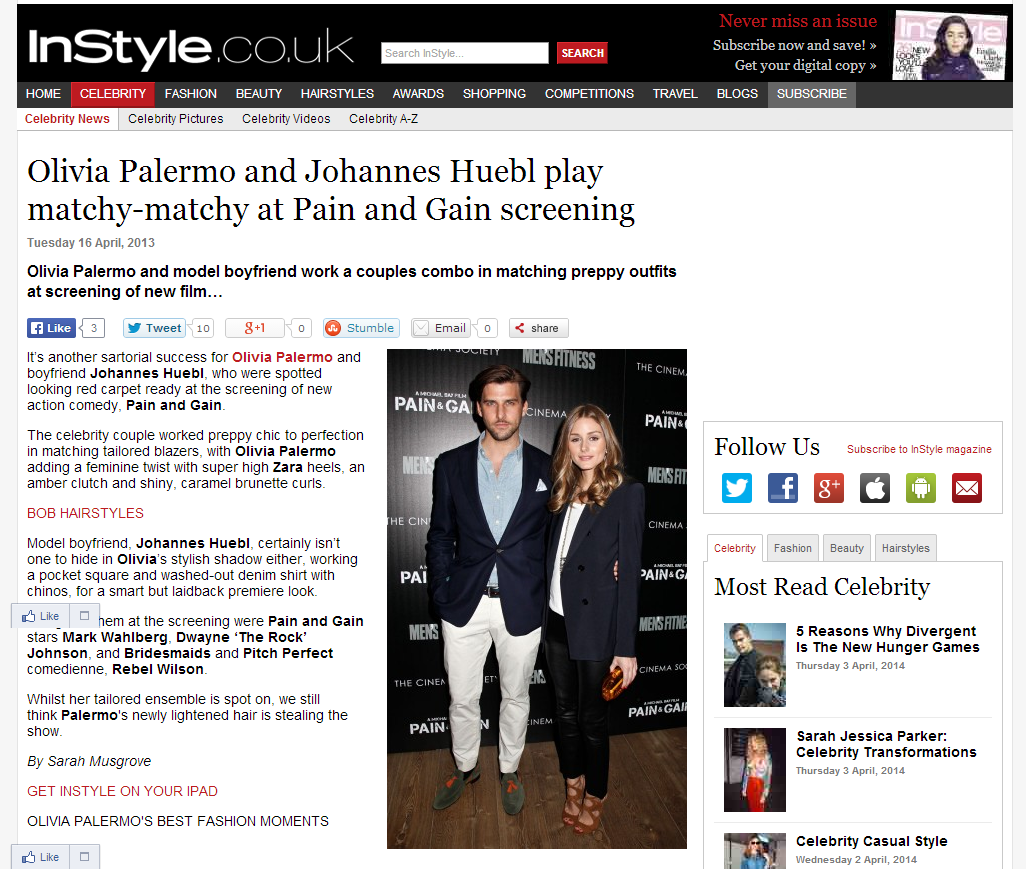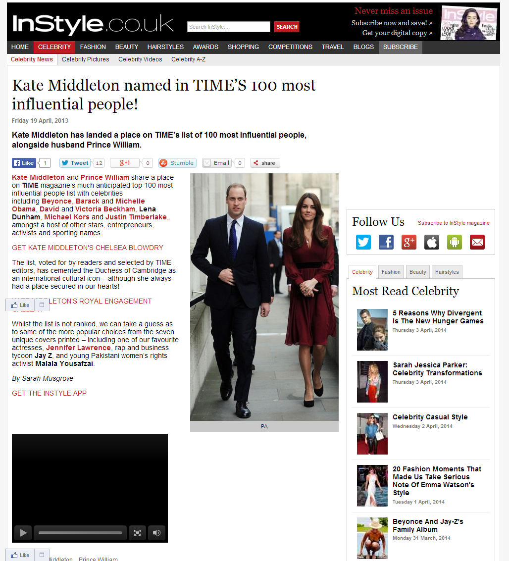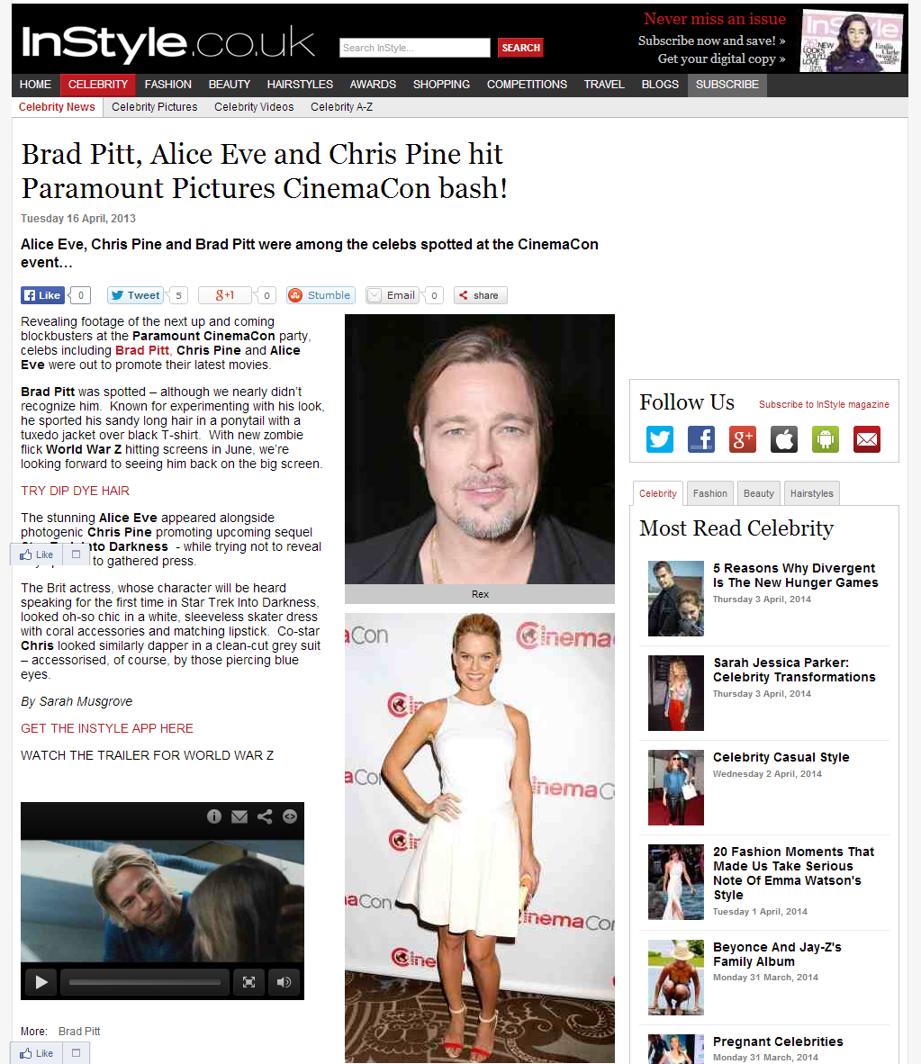 A selection of celebrity and fashion news (read: SEO friendly) stories written while at InStyle.co.uk – alongside managing their Twitter, Facebook, G+, Instagram and Pinterest.