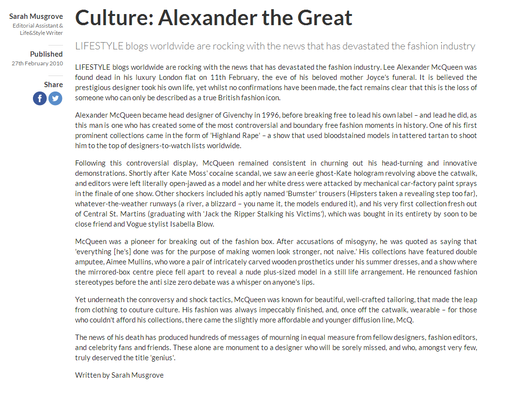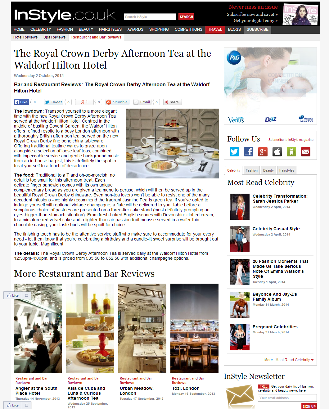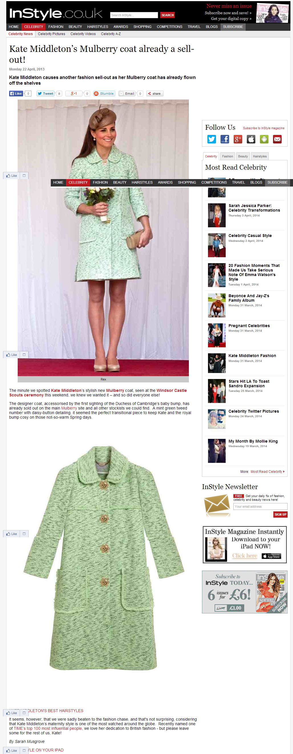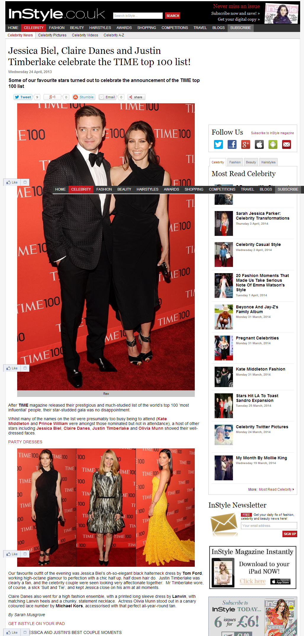 A selection of celebrity and fashion news (read: SEO friendly) stories written while at InStyle.co.uk – alongside managing their Twitter, Facebook, G+, Instagram and Pinterest.