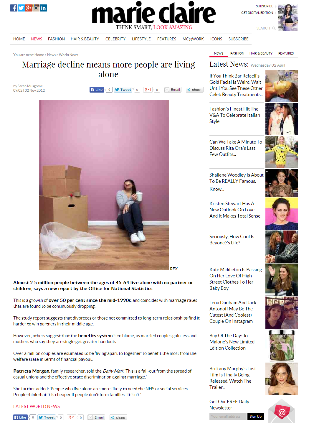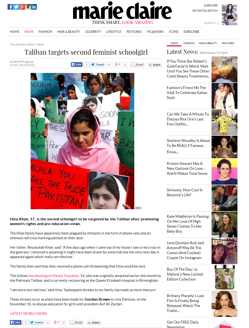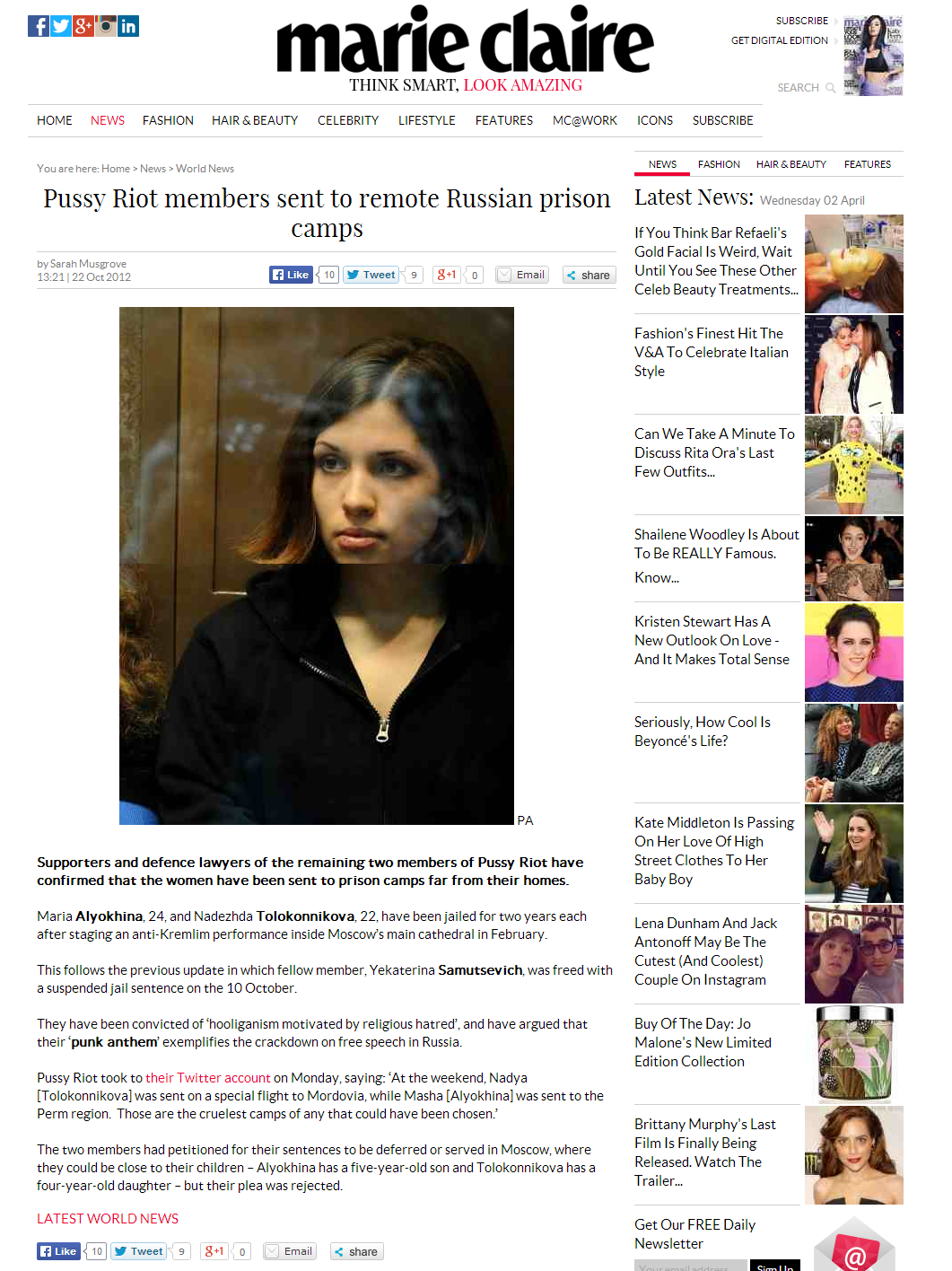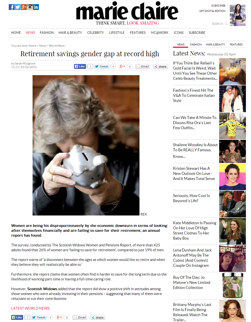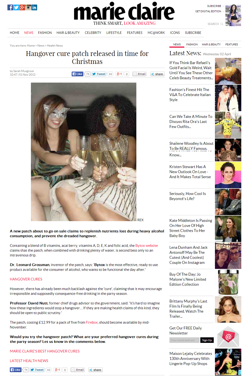 News stories written while on work experience on the Marie Claire Features desk.
